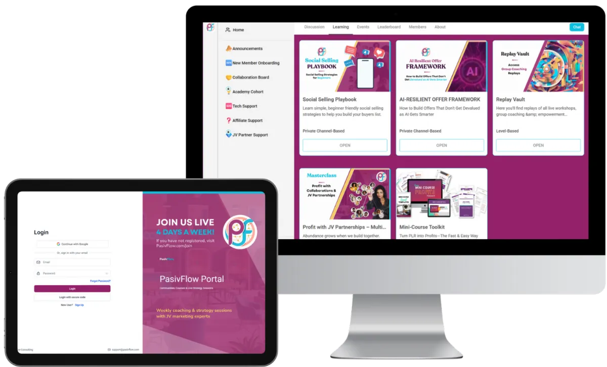The PasivFlow Collective is our ecosystem. A carefully curated JV community where aligned partners collaborate, cross-pollinate audiences, and build together — strategically and intentionally.